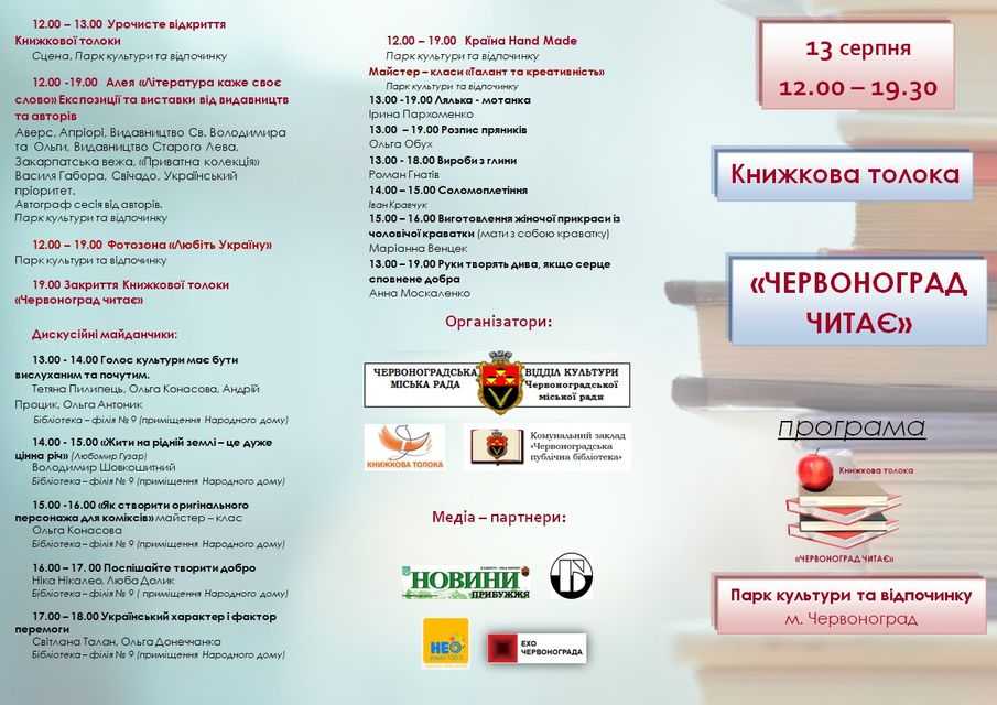 «Червоноград читає». 13 серпня у нашому місті відбудеться книжкова толока