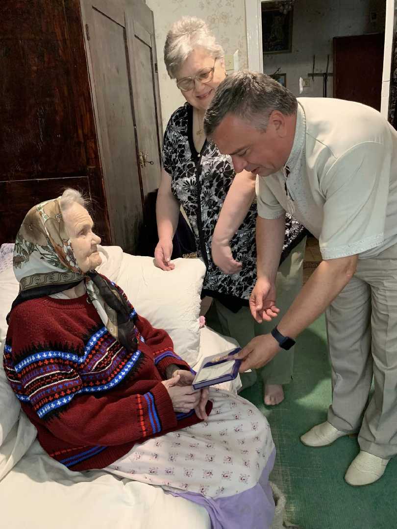 20 червня депутати присвоїли Євдокії Сарчук звання «Почесний громадянин Червоноградської міської територіальної громади». Сьогодні заступник міського голови Володимир Коваль вручив Євдокії Іванівній відзнаку.