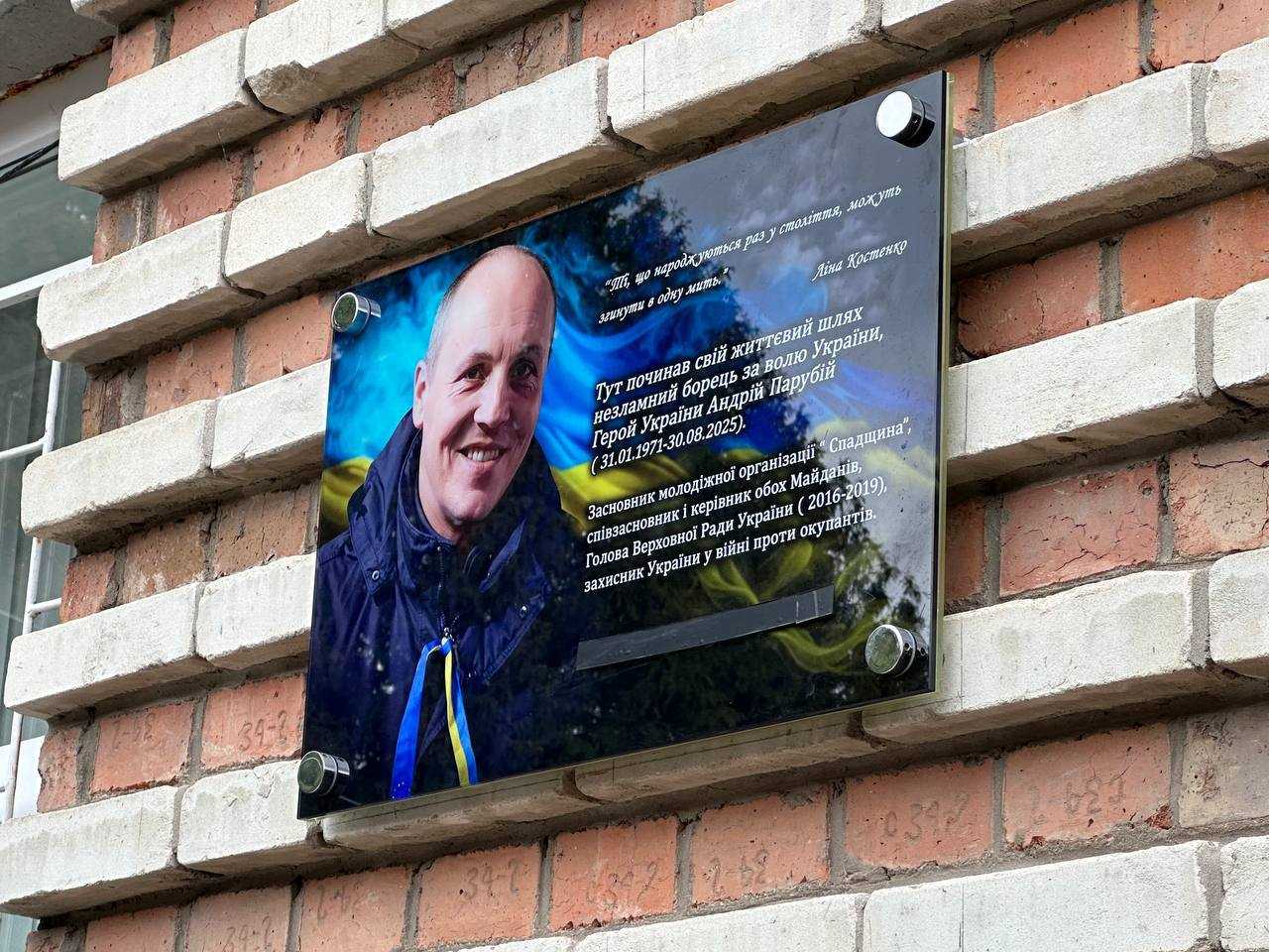 Сьогодні, 20 квітня, на стіні Гімназії №8 відкрили та освятили пам’ятну табличку Андрію Парубію, встановлену за ініціативи його рідних.