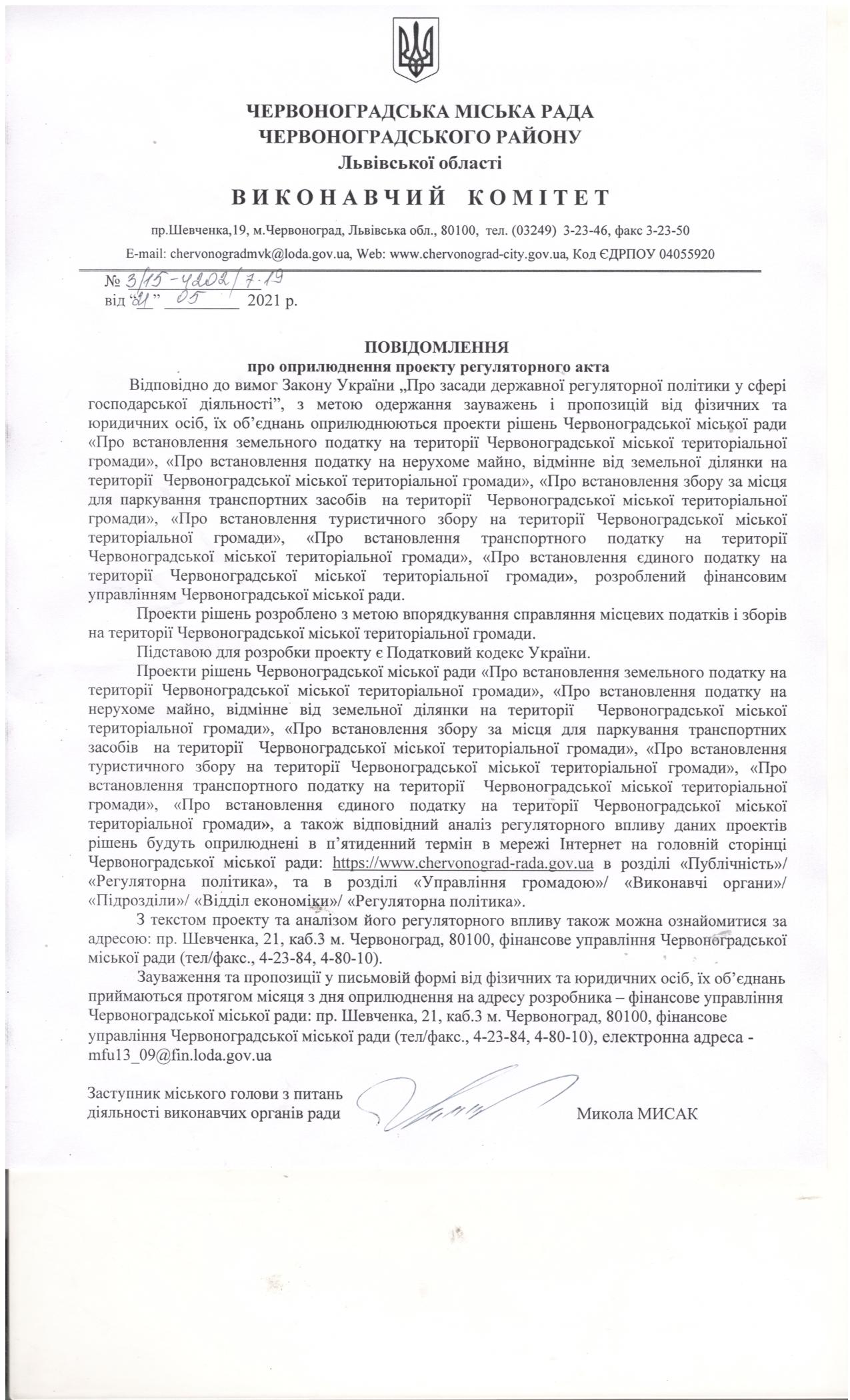 Повідомлення про оприлюднення проекту регуляторно акта (1).JPG