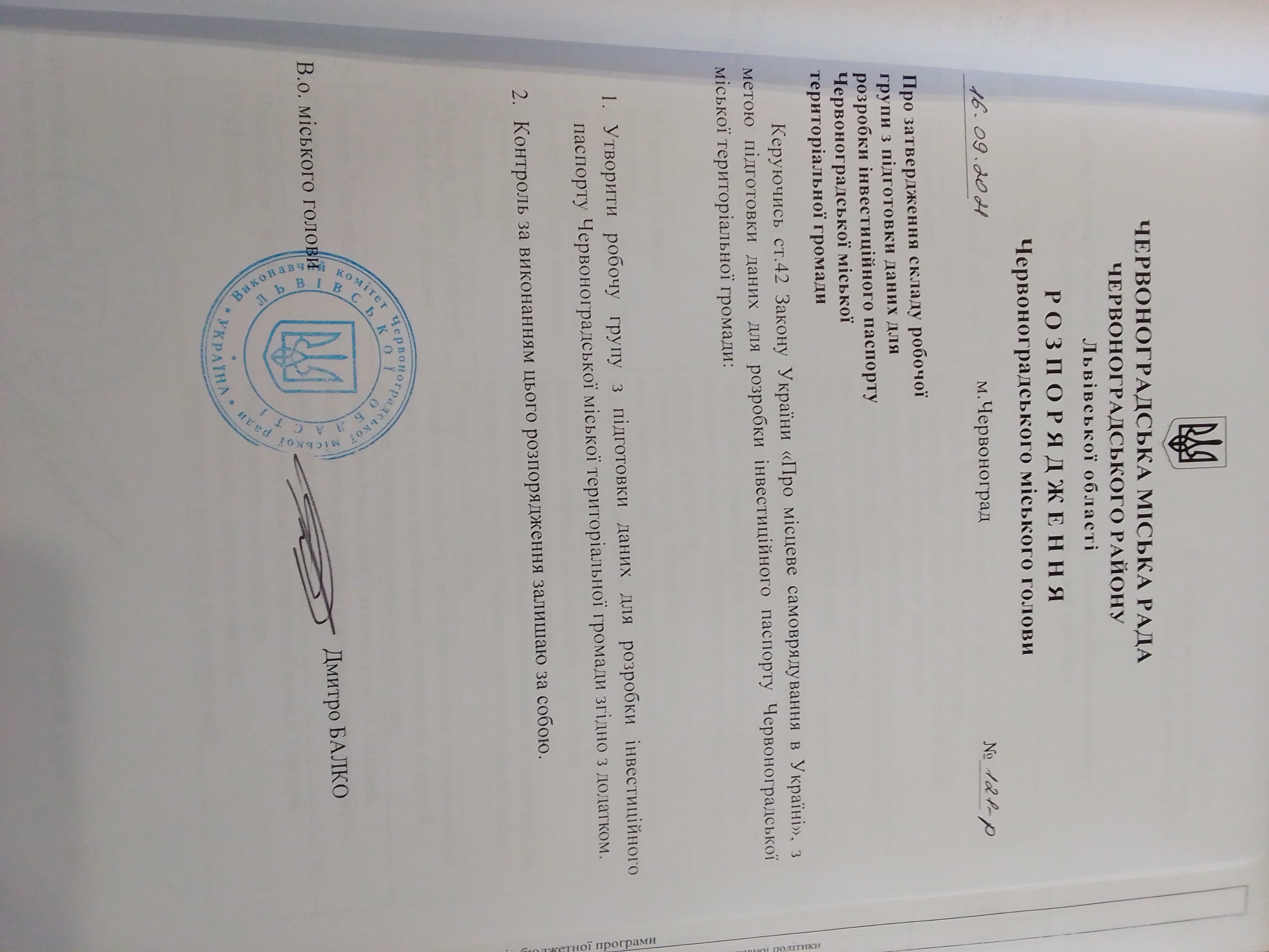 | Дата прийняття розпорядження | 2021-09-16 |
